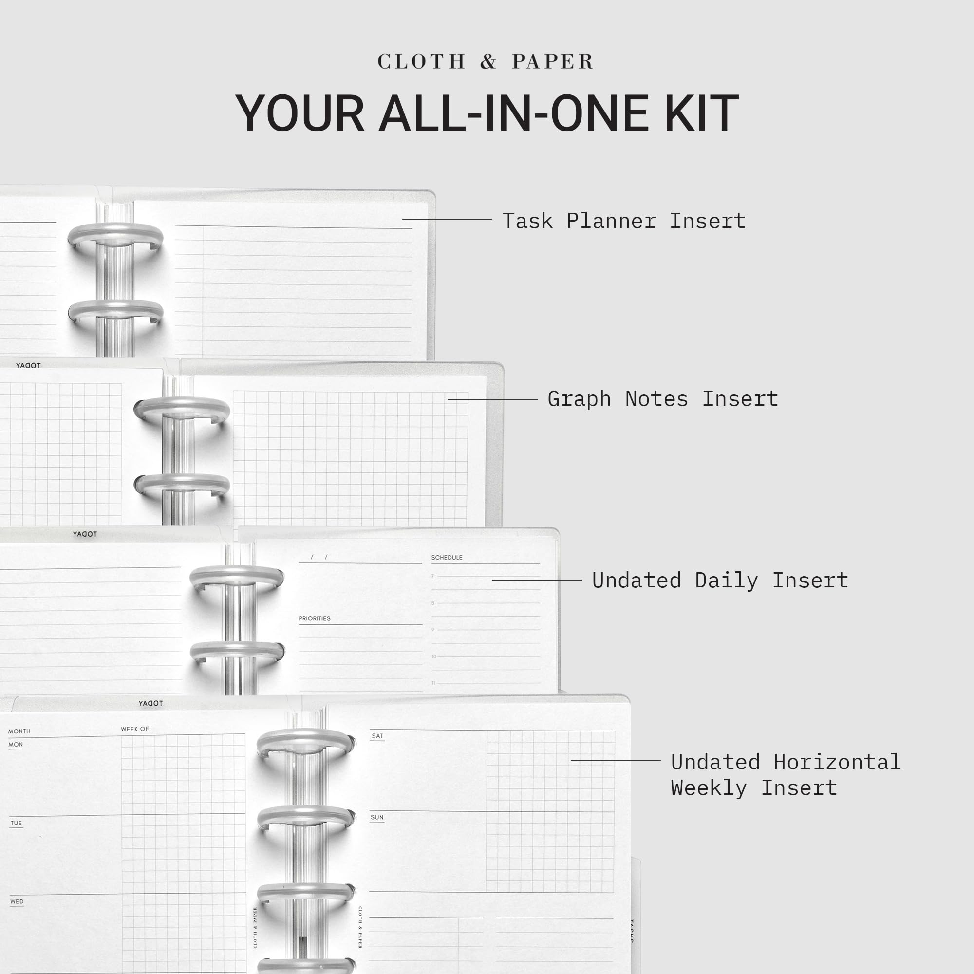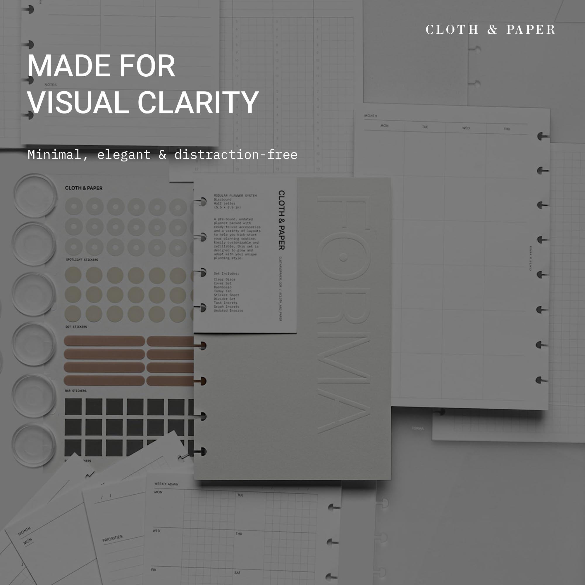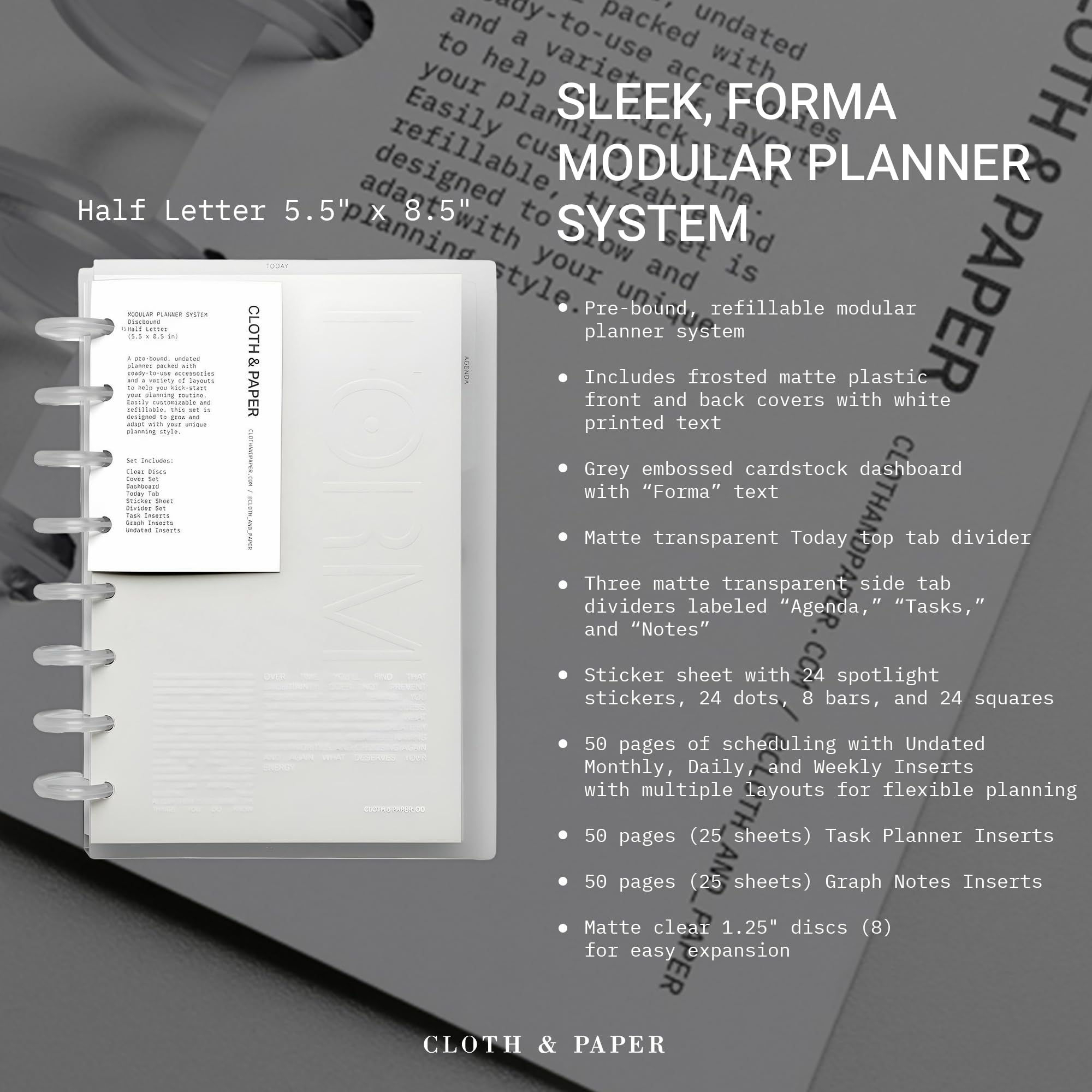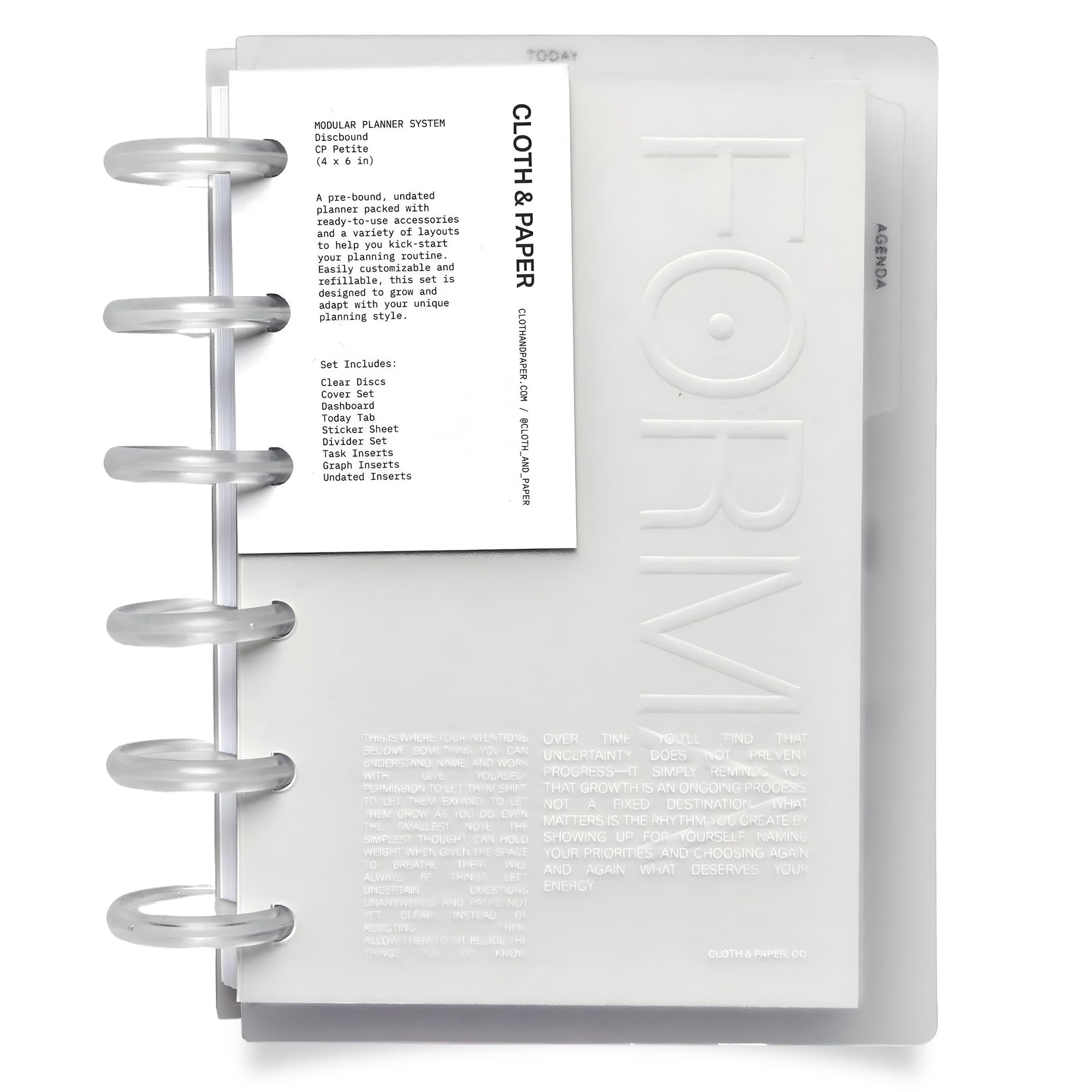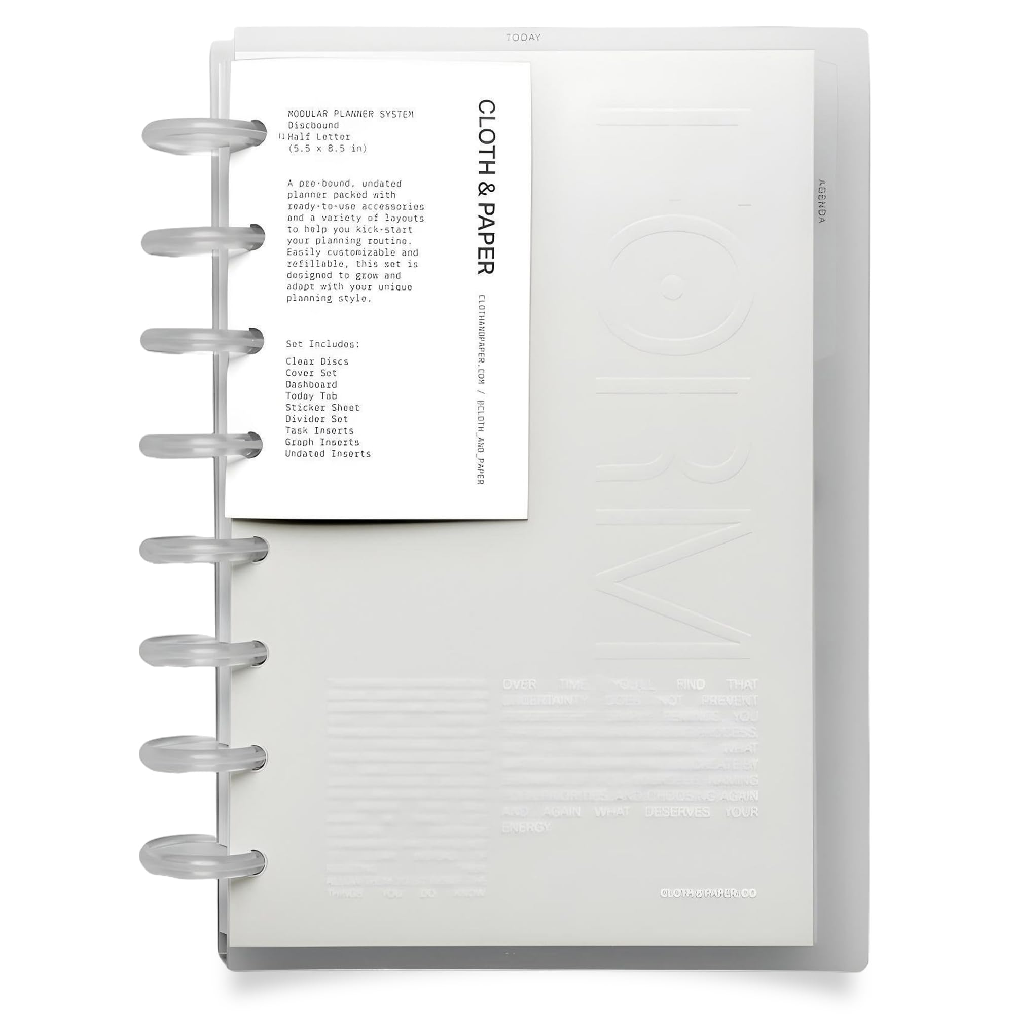 Cloth & Paper FORMA Modular Planner System – Premium Discbound Half Letter Undated Planner with Clear Discs, Covers, Dividers, Today Tab, Stickers & Inserts – Customizable Refillable Planning Organizer